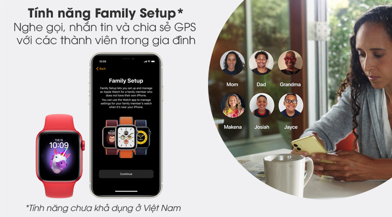 Tính năng Family Setup cho phép 1 tài khoản iCloud có thể quản lý nhiều chiếc đồng hồ thông minh Apple khác nhau, thuận tiện trong việc chăm sóc trẻ em và người già thông qua các tính năng: theo dõi sức khỏe, định vị trẻ em, phát hiện té ngã,...