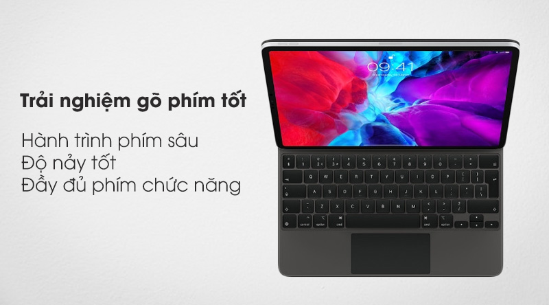 Magic Keyboard đem đến trải nghiệm đánh máy cực kì êm ái, độ nảy phím tốt cùng với tốc độ phản hồi nhanh nhạy, cho bạn cảm giác gõ không thua gì trên một chiếc laptop thực thụ.