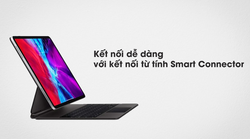Bàn phím hỗ trợ kết nối không dây bằng cổng Smart Connecter với iPad mà không cần bất kì cổng kết nối nào. Khi không cần dùng nữa, bạn chỉ cần tháo phụ kiện Apple này ra, bàn phím trên màn hình sẽ tự động xuất hiện.